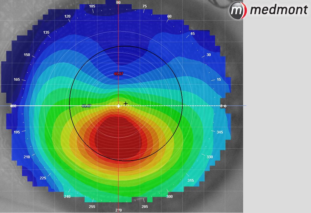 Keratoconus is a condition where the cornea (transparent structure at the front of the eye) in thin the inferior/central region.